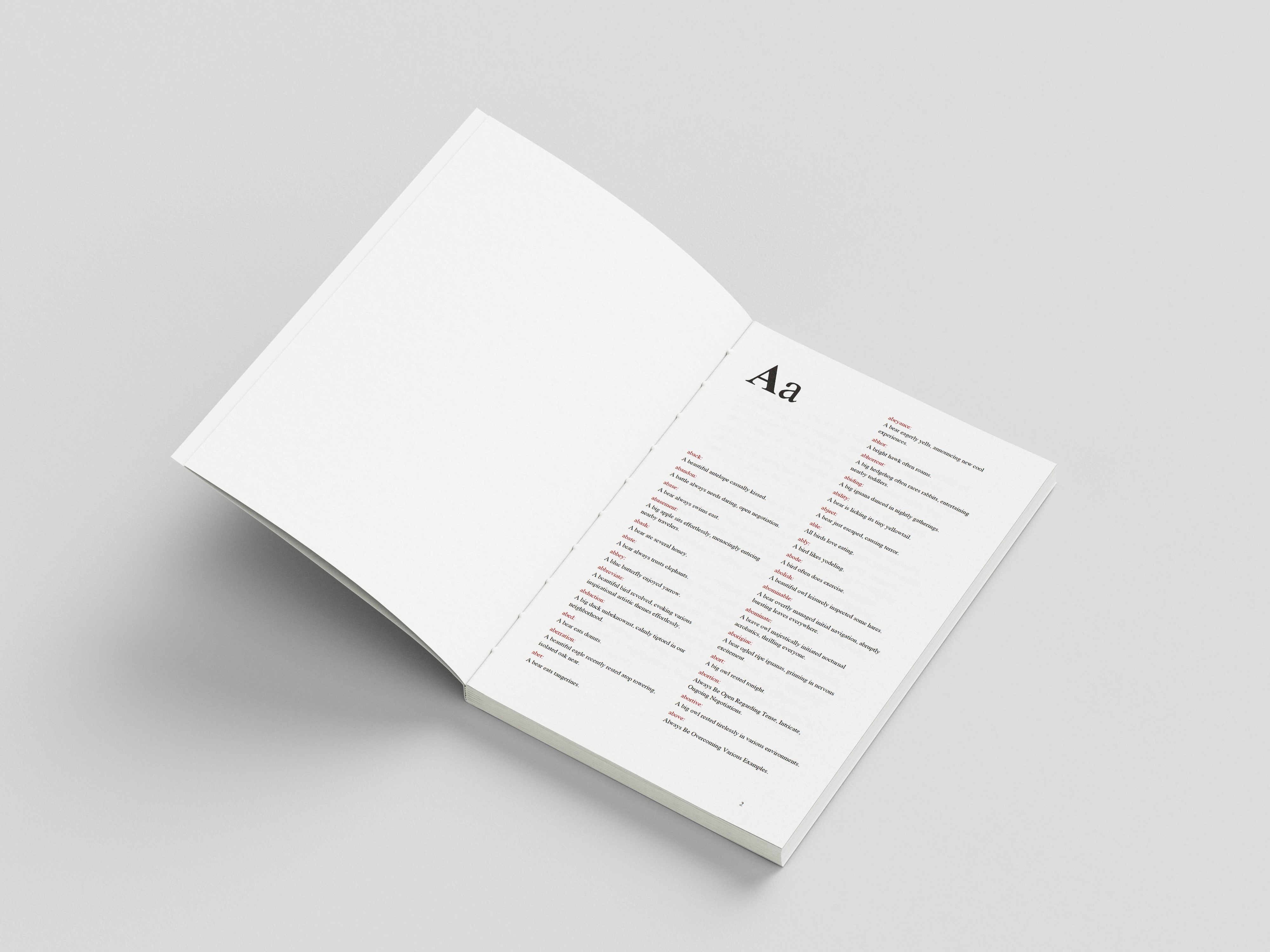 Language games like acrostics captivate people like me because there is a hidden layer behind putting words together following certain mechanisms. Making sense—the resulting sentences provide a greater context for the original words and reveal new perspectives. It’s not a coincidence that GPT makes sentences that relate to the original word’s meaning. Rather, it’s a deliberate calculation and balancing process to capture words based on their relations to each other: a ghost wandering through a latent word vector space. Any word in such a space is nothing but the linguistic associations around it, based on statistical computation of the patterns of the text huamans have produced. Sentences emerge from their context, and perhaps that’s why some entries are intriguing, such as “Music: Many unexpected sounds indicate creativity”, or “Date: Dinner and theater experience”. Lecsicon is only made possible by the fractal nature of the English language: the way we make sense of letters, words, sentences, and paragraphs.